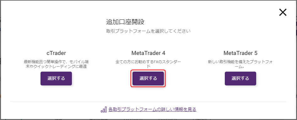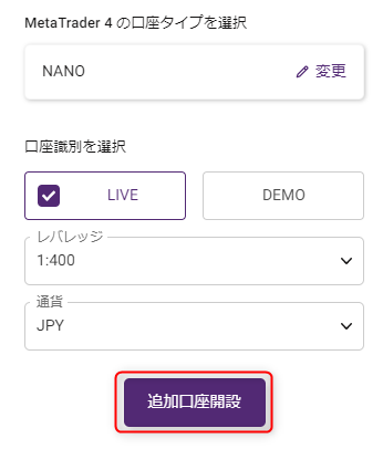 5.「追加口座開設」を選択すると追加口座の開設が完了です。