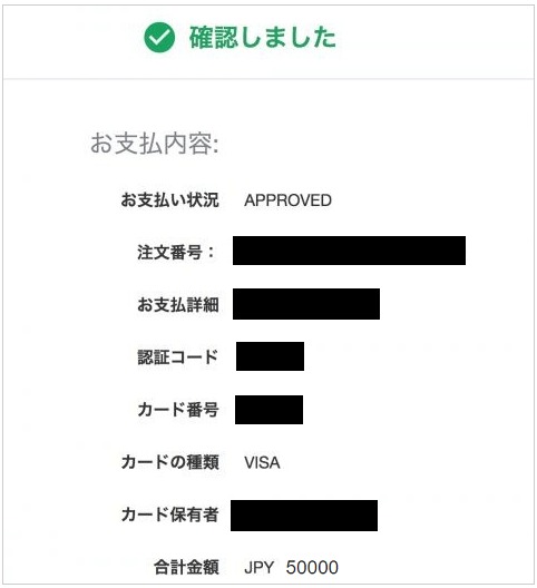 6.下の画像のようにクレジットカード入金完了画面が現れます。これで、クレジットカード入金手続きは完了です。